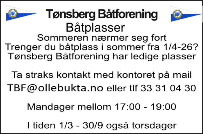 ![]() | Årsmøte 2024Hansen Petter, 20. January 2025Årsmøte: Tønsberg Båtforening Innkaller til ÅRSMØTE 12. mars 2025 kl. 19:00 i våre lo ... Les mer |